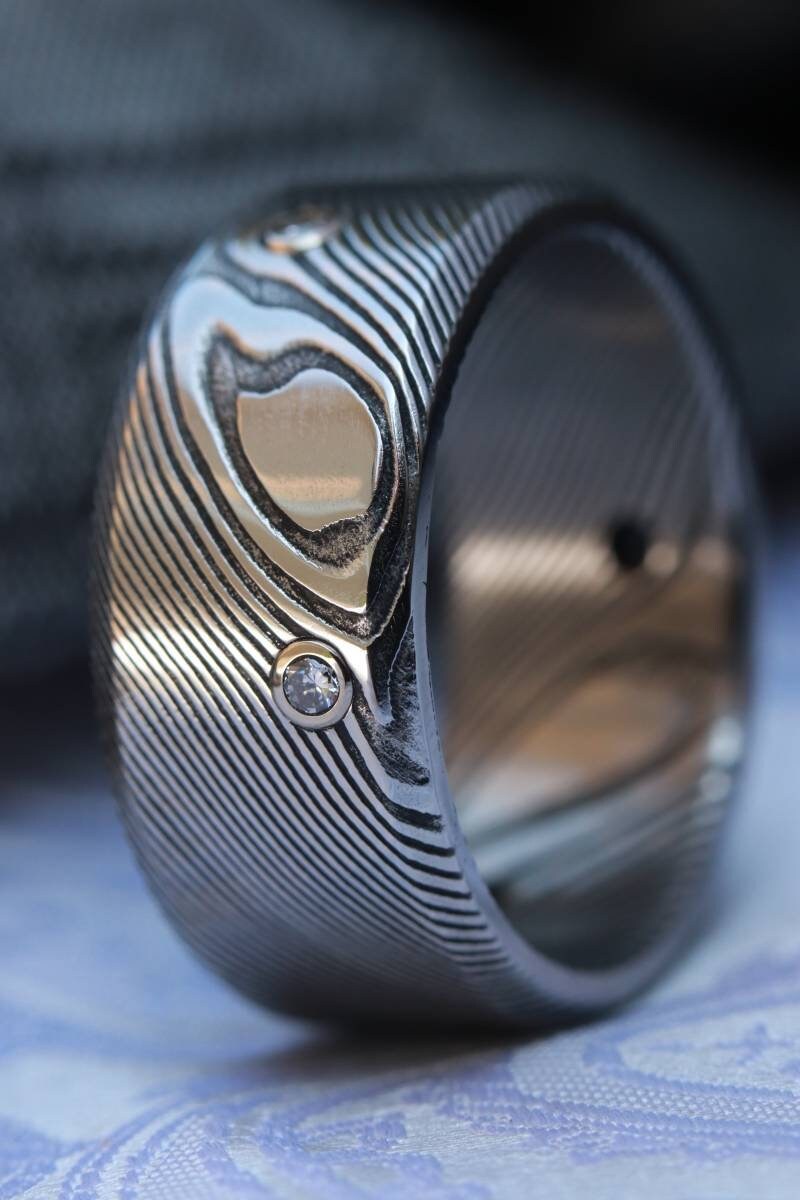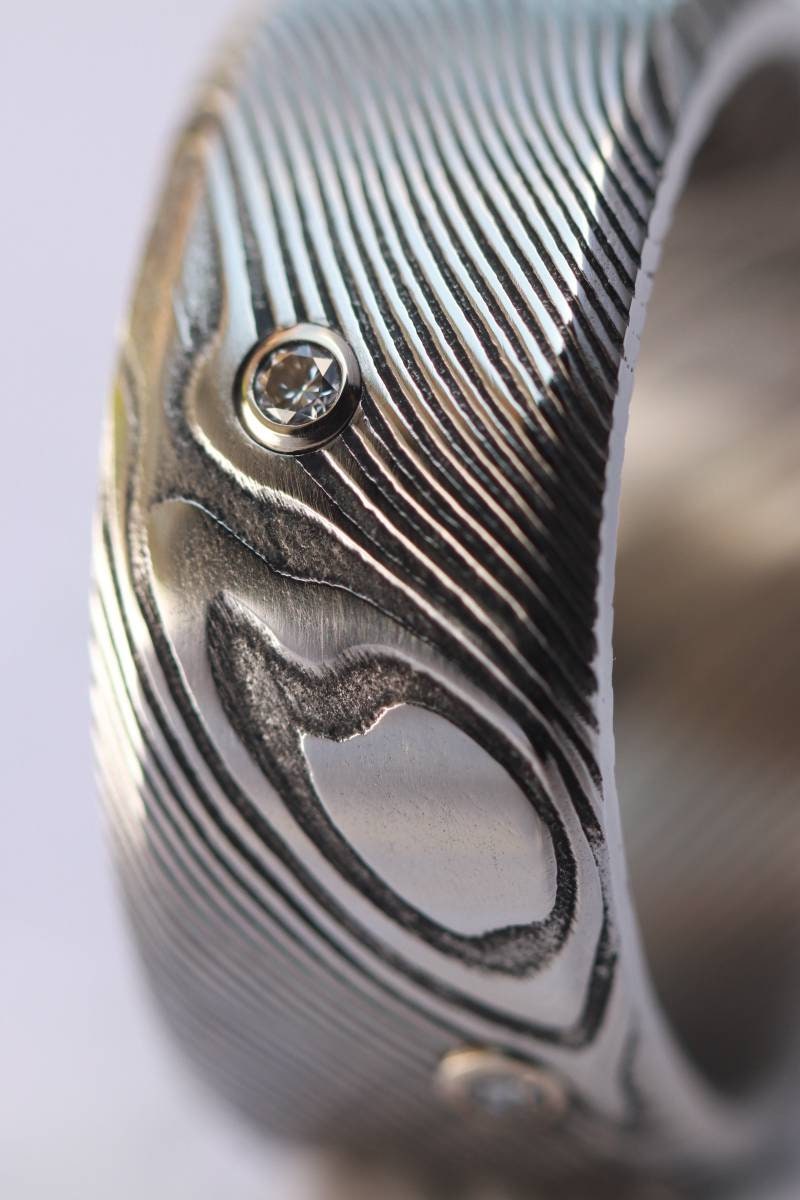 Materials: vs1 diamonds / 14k yellow gold / stainless damascus damasteel